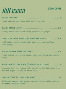 More of a local coffee shop person? Located in Downtown Peoria on Adams Street, a cozy sit-in (or take-out) cafe could be the right choice for you. With most of these options being vegan, a stark contrast to the other fall menu items is the Black Sesame Latte, which boasts a sweet, cinnamon, and ginger flavor. You may also want to try the Carrot-Ginger Espresso Tonic with freshly juiced carrots and ginger. For their food menu, they offer a vegan Squash Toast with Zucchini Dipping Sauce.