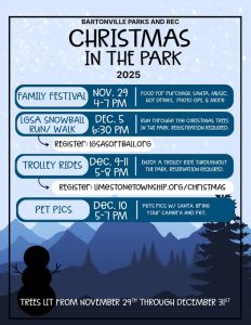 On December 5th at 6:30 p.m., you can register to participate in LGSA’s Snowball fun/walk. The LGSA Snowball run/walk is a run throughout the park. Registration is required; visit lgsasoftball.org to register.